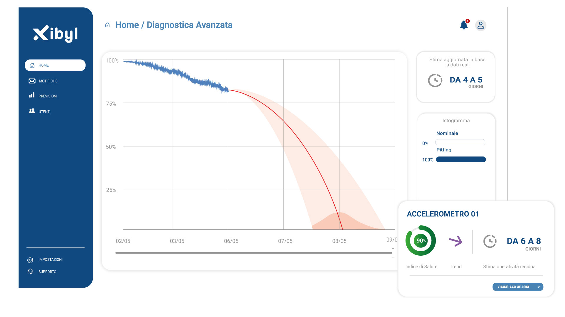 L’interfaccia web di Xibyl è progettata con un obiettivo chiaro: rendere immediatamente leggibile lo stato di salute dell’impianto anche a chi non ha competenze tecniche avanzate. Tutto è organizzato per offrire massima chiarezza, immediatezza e possibilità di approfondimento quando necessario.